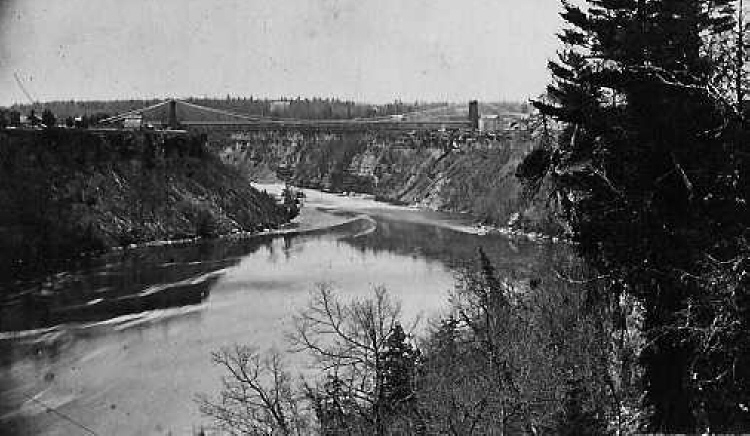 Long Shot of the Railway Suspension Bridge and Niagara Gorge