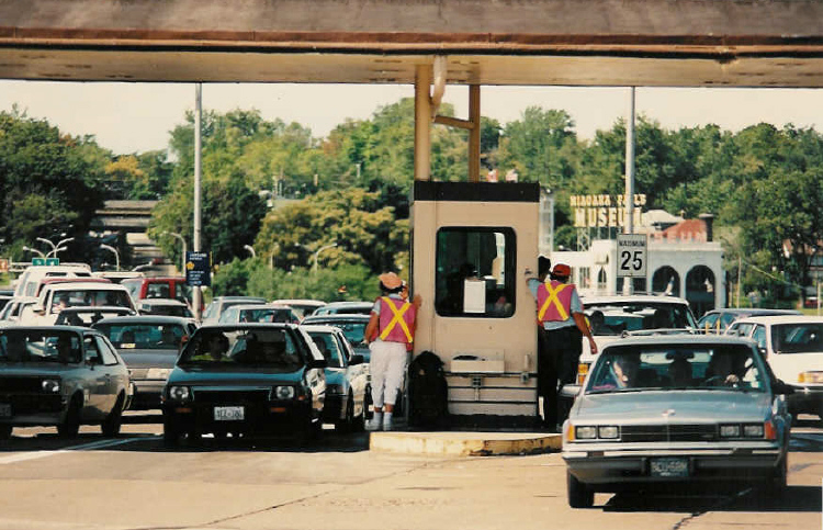 Rainbow Bridge Canada Customs - Niagara Falls Museum in background