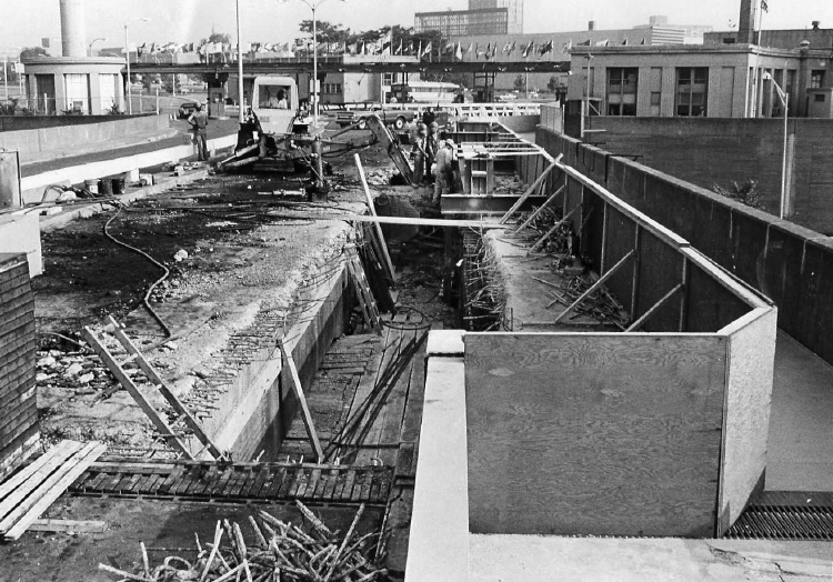 Repairing the Rainbow Bridge Deck - U.S. Customs in the Background