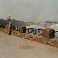- Looking over the Railing into the Niagara Gorge with the Rainbow Bridge in the Background