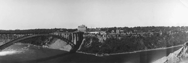 - Panoramic View of the Rainbow Bridge and the Niagara River - facing Canada