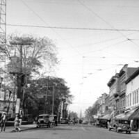 Looking down Queen Street, City Hall(left), Canadian Bank of Commerce (right)