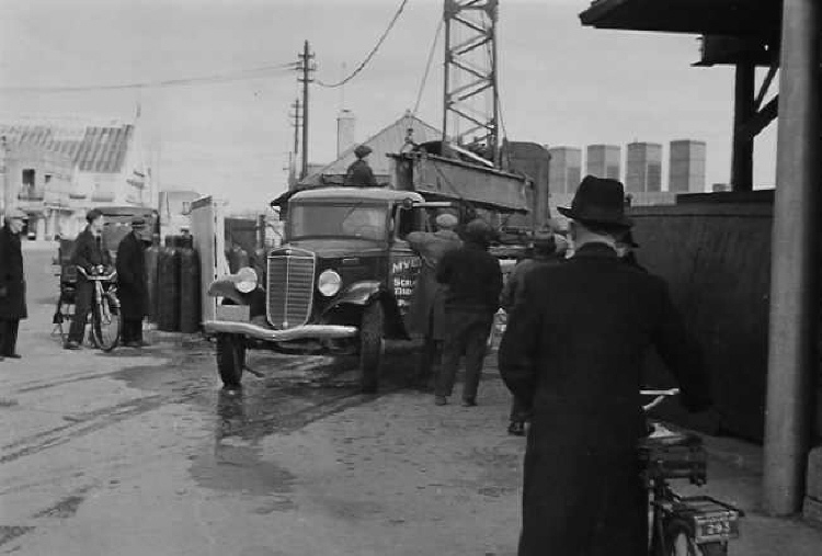 - River Road at Fallsview Bridge with Myer Salit Scrap Truck removing debris after the collapse of the Bridge