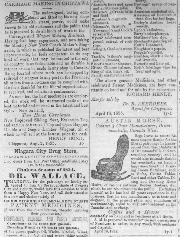 - en-CA The date of the ads in the newspaper are from the year 1855