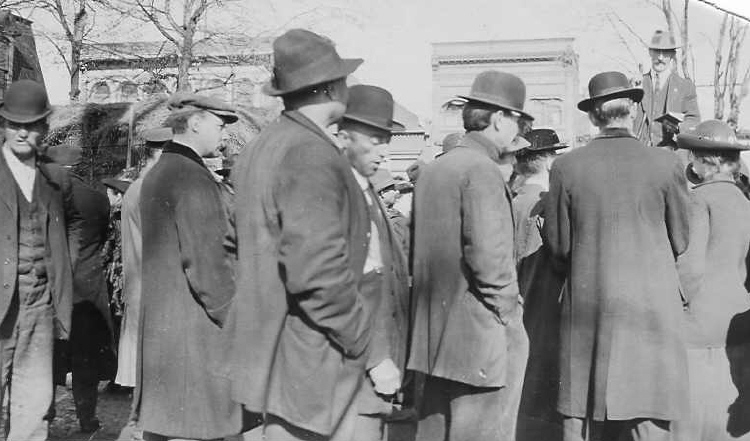 en-CA Mr. Collett, old fire hall on the left; A.H. Collett's fireproof storage building was located at 7 Market Square in Niagara Falls - Now part of the City Hall Complex. Mr. Collett was a furniture mover-household removals and piano hoisting. He was also an auctioneer. His moving company was called Power City Transport