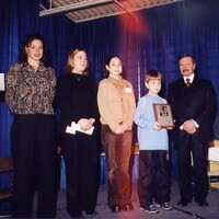 - L-R: Amy Rufrano, Jessica Rufrano, Jana Sacco, and Christopher Sacco standing with Mayor Wayne Thomson ; grand children of Anthony Rufrano