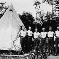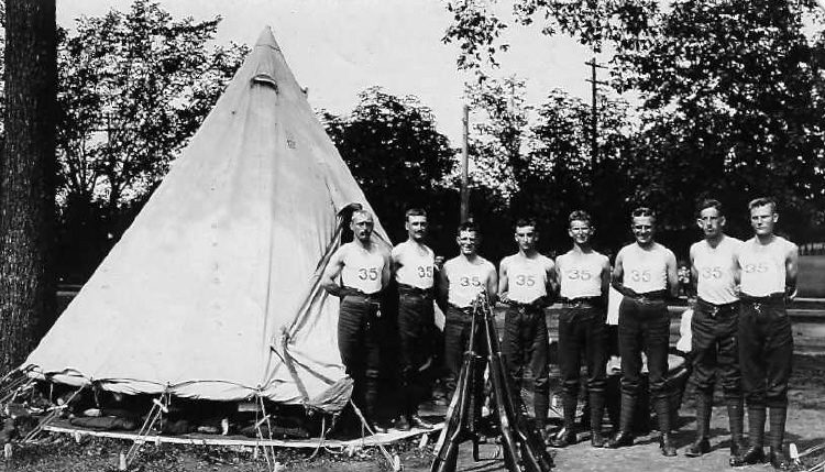 - Camp Niagara Troops at Fort Mississauga standing by a tent and a pyramid of rifles