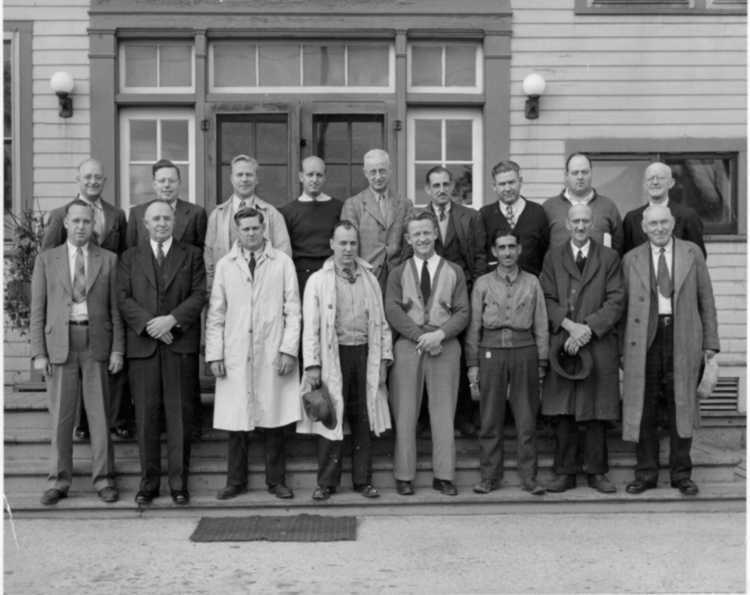- en-CA Front row L-R: Chris Kelsall, Frank Uttley, Tom Bestor, Al Anderson, Harry Webber, Phil Fisher, Boudreau, Bill Johnson; Back row L-R: Harry Clarke, Hugh Doherty, Wally Miller, Jack Williamson, ( Walter )? Denks, Harry Reynolds, Pete Bishop, Ernie Cody, Harry ? ;