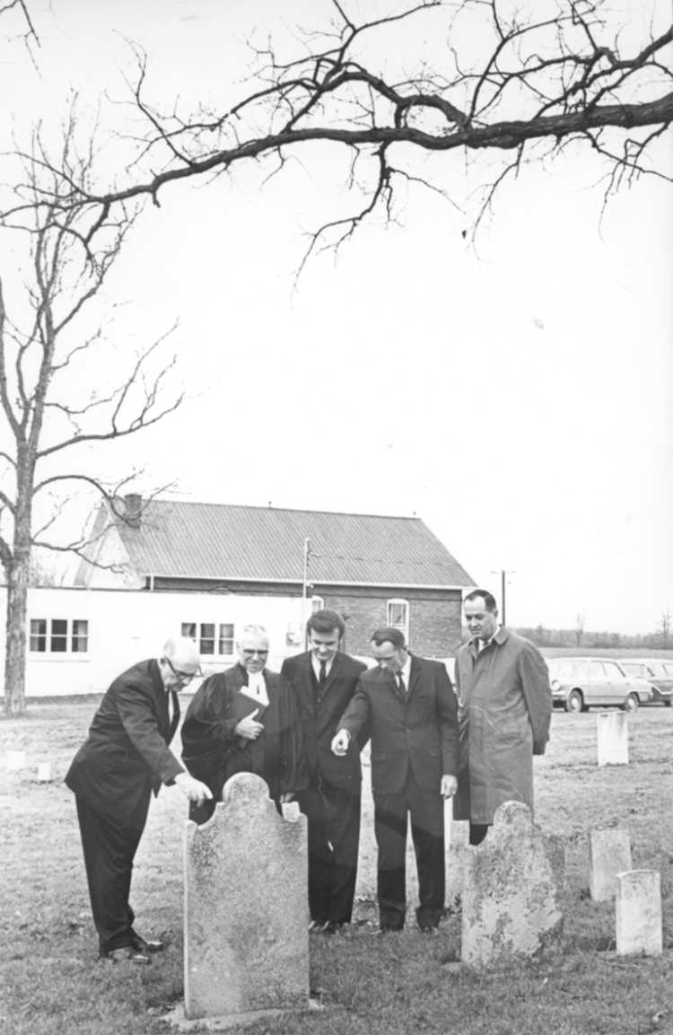 Petrie at Headstone of Bucher - Lyon's Creek United Church Cemetery