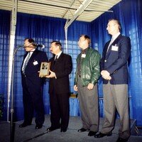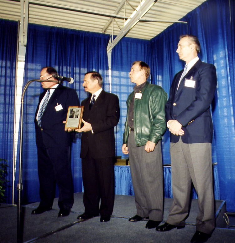 - Jack and Gary Patterson sons of Cyril Patterson accept the award from Mayor Wayne Thomson