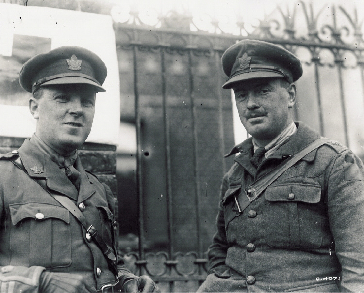 Lt. Graham Thomson Lyall, VC, with unknown Major, both of the 102nd Canadian Infantry Battalion
