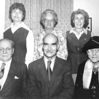 en-CA Bottom row (L to R) Wilfred Hicks (Vice President), Ted Lees (Chairman/President), Zettie May Miller (Honourary President) Top row (L to R): Jackie Glen (Secretary-Treasurer), Clara Ruch and Rita Somerville (Social Convenors). Photo taken in Willoughby Township Hall on Sodom Road.