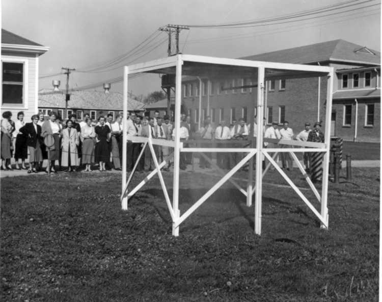 en-CA - employees watching a demonstration of a mock up sprinkler system