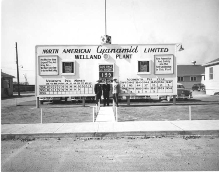 - Cyanamid's Welland Plant Fire Marshall's ? standing in front of Accident Record Billboard - 1953