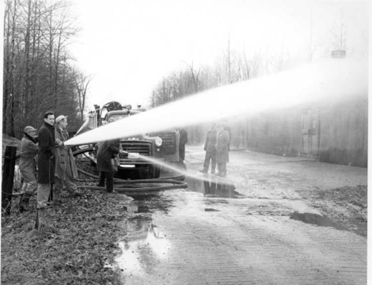 North American Cyanamid Welland Works Fire Dept. improving their skills with Water Hose