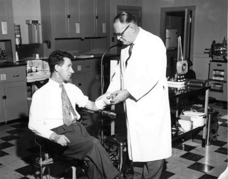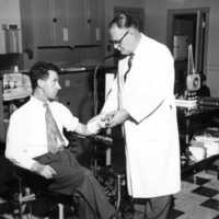 - en-CA Dr. W. G. Clarke examines Peter Clarke's hand in cast