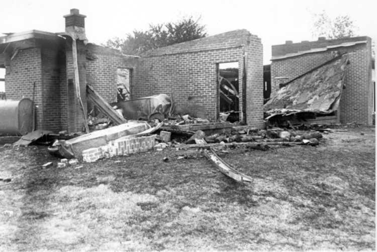 Remains of an unknown brick building after a fire