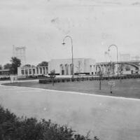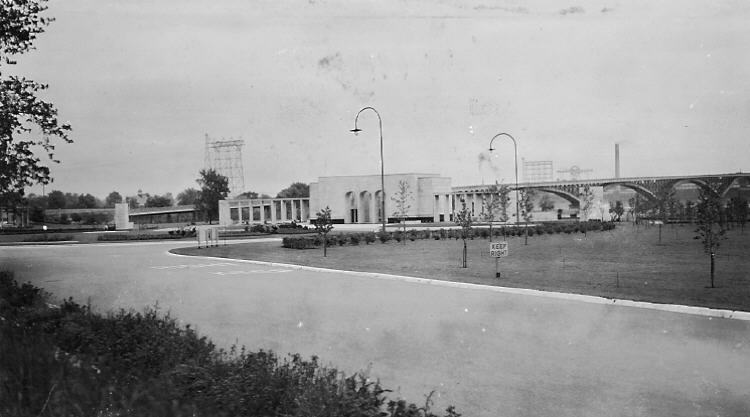 Mather Park Gate on the Niagara Parkway & Peace Bridge on the right - Fort Erie, Ont.