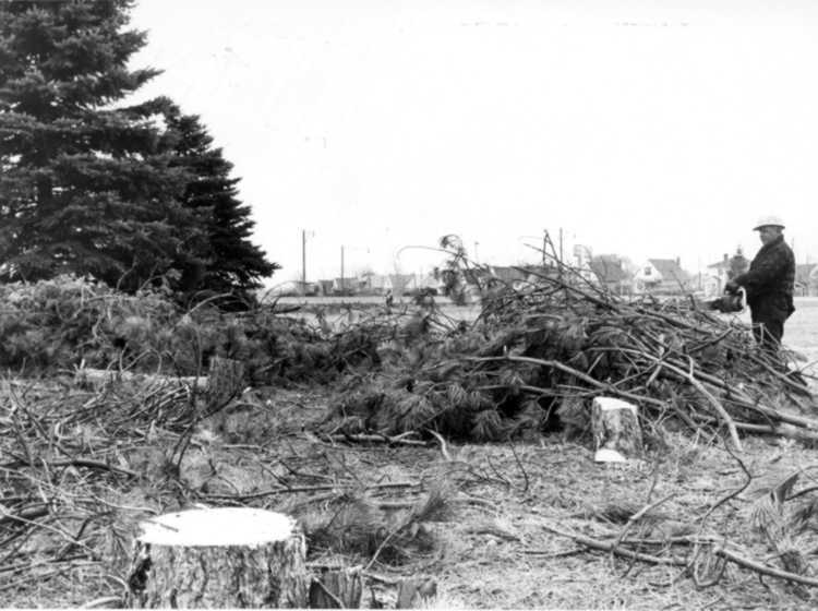 Cutting down trees to make way for the QEW Traffic Circle, Niagara Falls