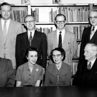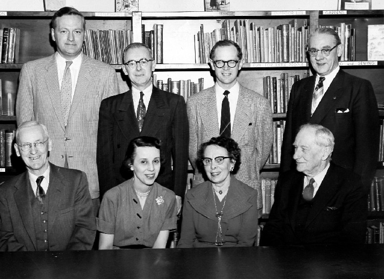 - Front row L-R: G H Bielby, Eileen Weber Chief Librarian, Gladys Thompson, Claude A Findlay