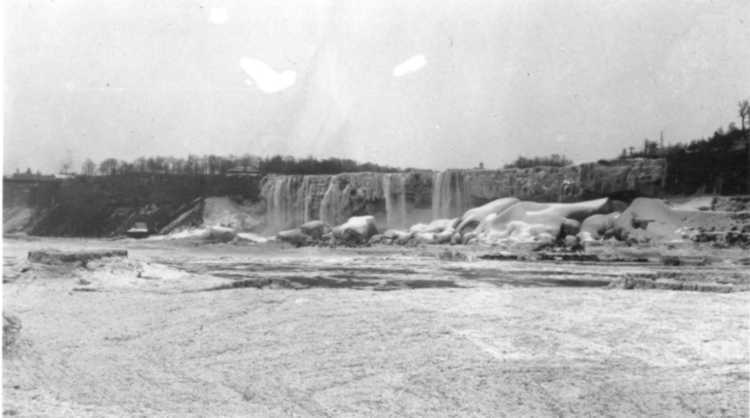 - The American Falls covered with ice, as view from the Ontario Power Generating Station - 1909