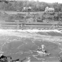 An Aerial view of the Maid of the Mist Boat & the Hydro Electric Power Tunnels, Niagara Falls