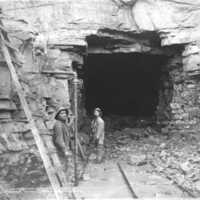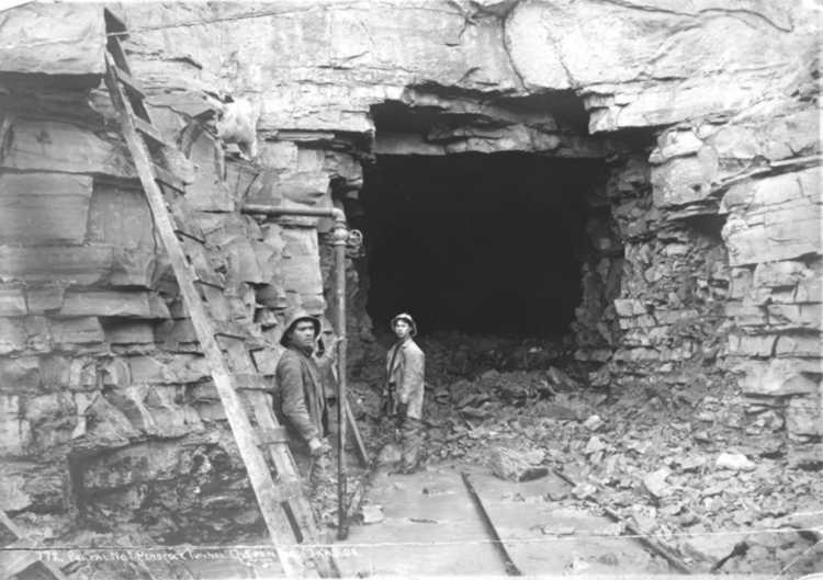 - Workmen pose beside a tunnel for the Ontario Power Company's #1 Penstock - 1904