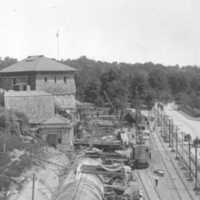 - Overhead view of construction, just North of Table Rock, ca 1905
