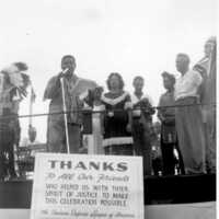 - Chief M. Bear, Master of Ceremonies standing at the podium - 1955
