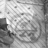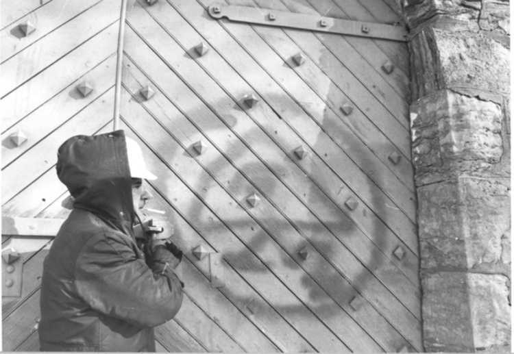 Gary Landry having a cigarette by the gate of the Lincoln County Jail - 1972