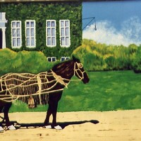 Welland mural depicting horse and carriage in front of Plymouth Cordage Company
