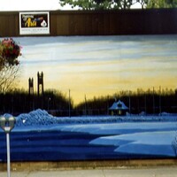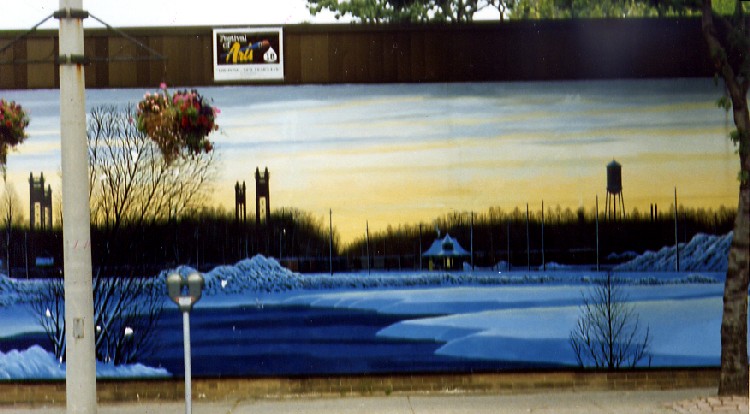 Welland mural depicting a winter scene on the Welland Ship Canal and lock bridges