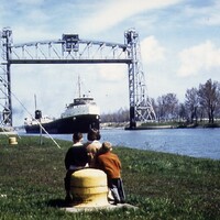 - Welland Ship Canal - upbound Laker going under Canal Bridge at Glendale Ave