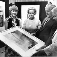 - en-CA L - R: Susan Ball ( Kinsman ), Erna Jahnke, Geo. Seibel, Pat Feeney ( Chairman of Library Board )( 1978 or 1979 )