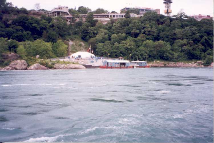 Maid of the Mist's Docking Station with the Sheraton Foxhead & Brock Hotels in the background