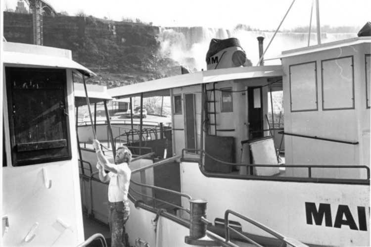 Unknown man cleaning The Maid of the Mist