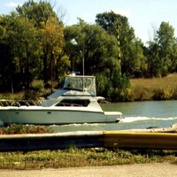 - Welland Ship Canal - cabin cruiser downbound at Bridge 5