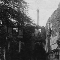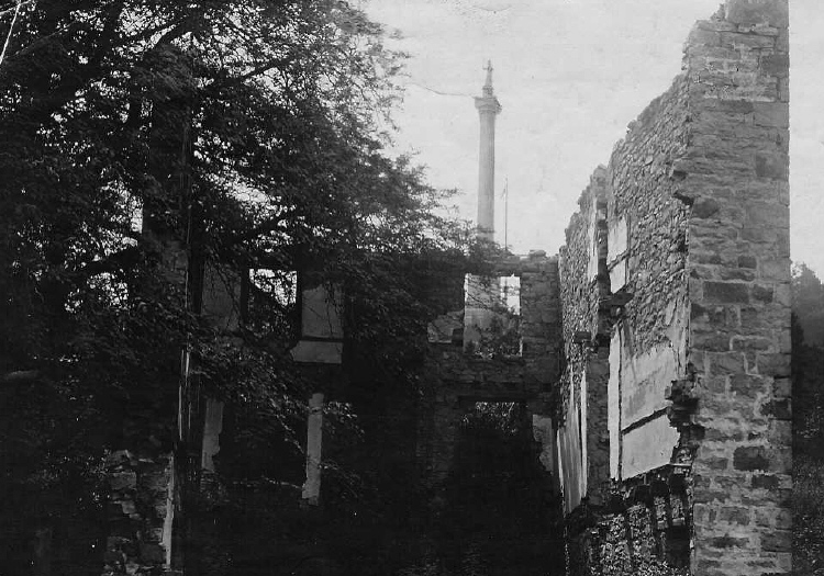 Ruins of William Lyon Mackenzie's Printing Office with Brock's Monument in the Background
