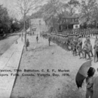 - First Mobilization of the 176th Military Battalion, CEF [Canadian Expeditionary Force] at Market Square Niagara Falls