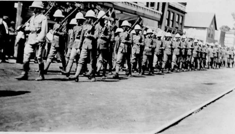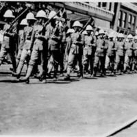 Soldiers marching through Niagara Falls