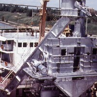- Welland Ship Canal - lake freighter Tartantau being lowered in Lock 3