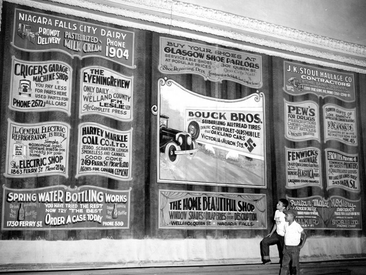 - Capitol Theatre curtain with advertising for local businesses and shops
