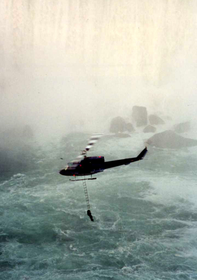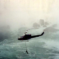 Helicopter in front of the American Falls during filming of the Movie "The Long Kiss Goodnight"