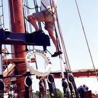 Last voyage of the Bluenose II through Welland Canal and the Great Lakes -close-up of rigging