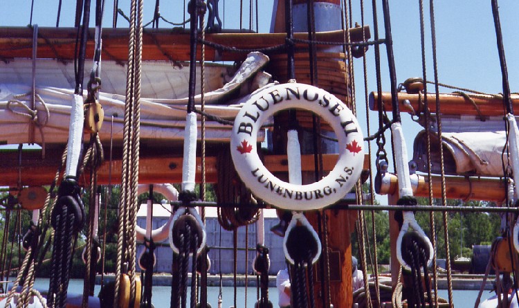 - Last voyage of the Bluenose II through Welland Canal and the Great Lakes close-up of main mast