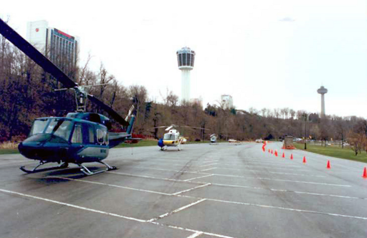 - Helicopters from the Movie "The Long Kiss Goodnight" parked at Queen Victoria Park, Sheraton Fallsview Hotel and Minolta and Skylon Towers in background