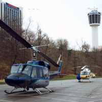 Helicopters from the Movie "The Long Kiss Goodnight" parked at Queen Victoria Park, Sheraton Fallsview Hotel and the Minolta Tower in background