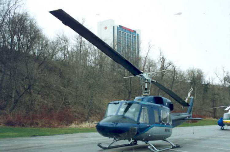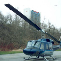 Helicopters from the Movie "The Long Kiss Goodnight" parked at Queen Victoria Park, Sheraton Fallsview Hotel in background