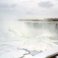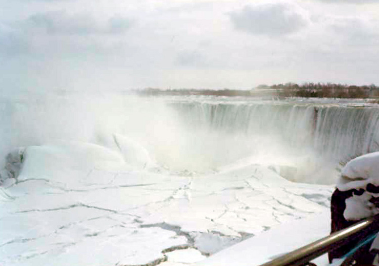- Ice bridge and the frozen Niagara River at the base of the Horseshoe Falls