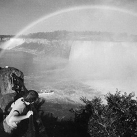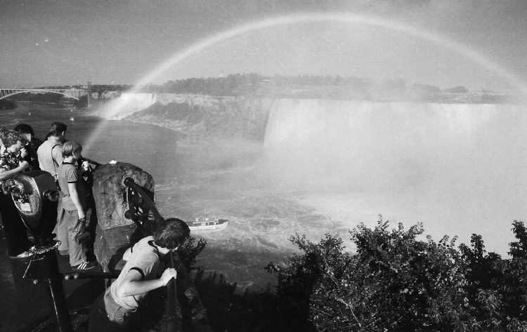 Tourists looking over the Railing at Niagara Falls & Maid of the Mist